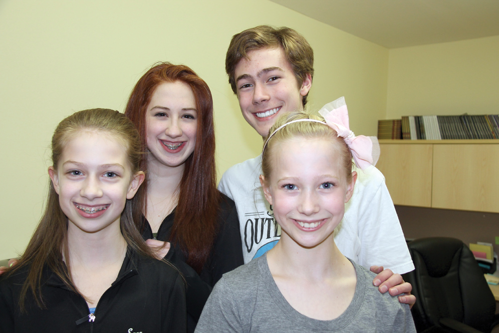 Siblings Sara, left, and Kate McGowan and Steven and Laura Buchanan from Judy Russell Enchainement Dance Centre are among the select few talented dancers chosen to perform at the B.C. Provincials in Penticton in June. Teresa MALLAM/Free Press